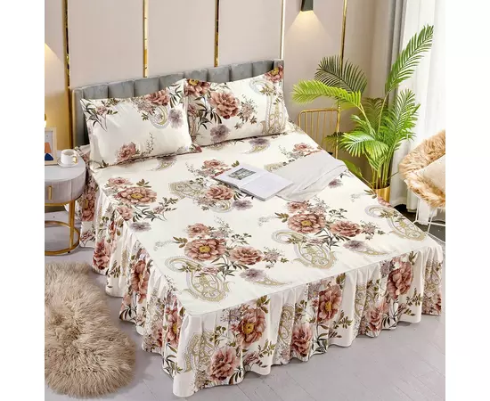 Cearceaf De Pat Cu Volane si 2 Fete De Perna Bumbac Finet - JOJ82