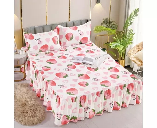 Cearceaf De Pat Cu Volane si 2 Fete De Perna Bumbac Finet - JOJ83