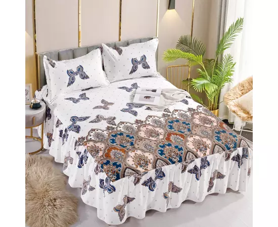 Cearceaf De Pat Cu Volane si 2 Fete De Perna Bumbac Finet - JOJ87
