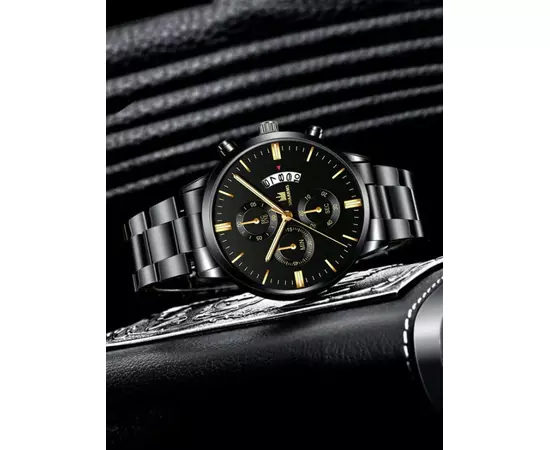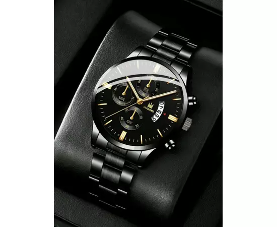 Tip de afișare: Indicator Forma ceasului: Rundă Caracteristici: Data Culoarea curelei: negru Cutii incluse: Nu Tip: Ceasuri de mână Material: Oţel inoxidabil Materialul carcasei: aliaj de zinc Stil: Casual, Afaceri Alimentare electrică: Alimentat cu baterie Baterii incluse: da Gen: Bărbați Rezistenta la apa: Fără impermeabil Afișare la scară: Scala de bară
