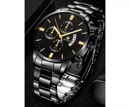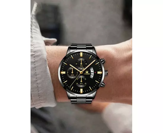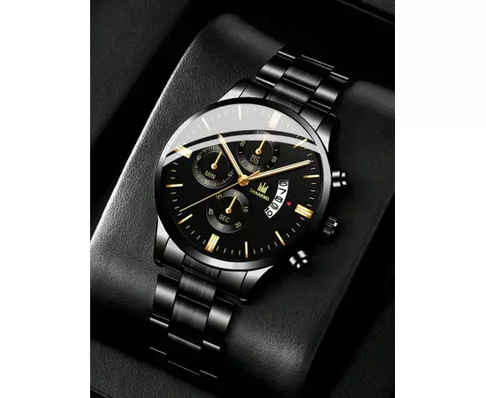 Ceas pentru barbat, curea neagra, din otel inoxidabil, cu cadran rotund, pentru afaceri, pentru viata de zi cu zi