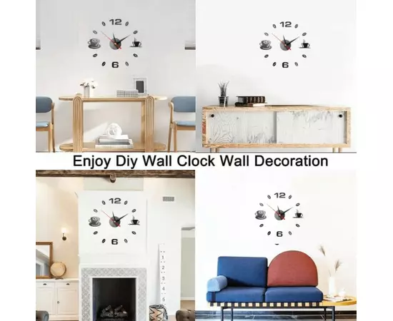 Toate accesoriile necesare montajului sunt incluse in pachet. Ceasul decorativ este usor de asamblat cu ajutorul benzilor dublu-adezive. Cifrele sunt din spuma peste care se aplica acril colorat, lucios.