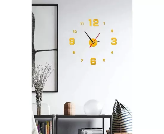 Toate accesoriile necesare montajului sunt incluse in pachet. Ceasul decorativ este usor de asamblat cu ajutorul benzilor dublu-adezive. Cifrele sunt din spuma peste care se aplica acril colorat, lucios.
