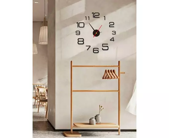 Toate accesoriile necesare montajului sunt incluse in pachet. Ceasul decorativ este usor de asamblat cu ajutorul benzilor dublu-adezive. Cifrele sunt din spuma peste care se aplica acril colorat, lucios.