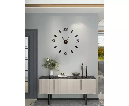 Toate accesoriile necesare montajului sunt incluse in pachet. Ceasul decorativ este usor de asamblat cu ajutorul benzilor dublu-adezive. Cifrele sunt din spuma peste care se aplica acril colorat, lucios.