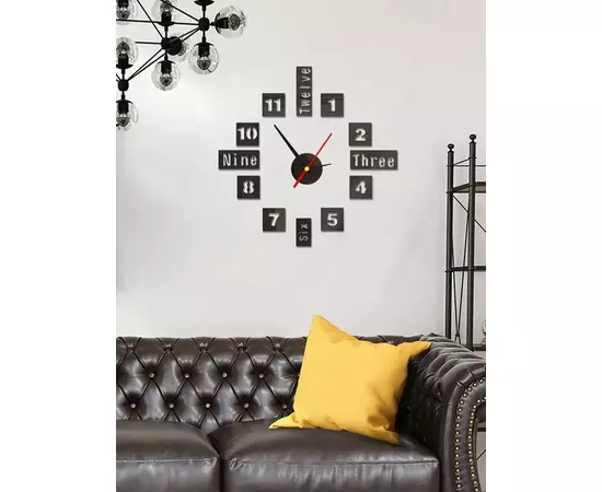 Toate accesoriile necesare montajului sunt incluse in pachet. Ceasul decorativ este usor de asamblat cu ajutorul benzilor dublu-adezive. Cifrele sunt din spuma peste care se aplica acril colorat, lucios.
