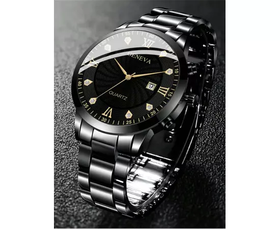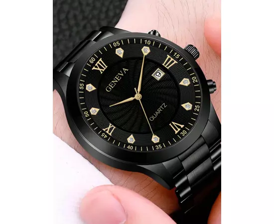 Material carcasă ceasuri cuarț: aliaj de zinc Gen: bărbați Tip: Set de ceas Cutii incluse: Nu Rezistență la apă: nu este rezistent la apă Culoarea curelei: Negru Material curea: oțel inoxidabil Mișcare: Cuarț