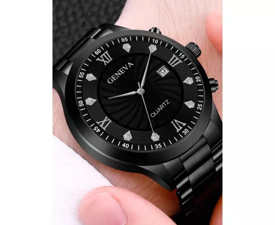 Material carcasă ceasuri cuarț: aliaj de zinc Gen: bărbați Tip: Set de ceas Cutii incluse: Nu Rezistență la apă: nu este rezistent la apă Culoarea curelei: Negru Material curea: oțel inoxidabil Mișcare: Cuarț