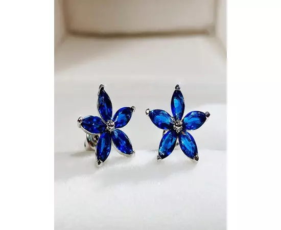 Cercei Argintii Floare Albastra 1.3x1.3cm - 42272
