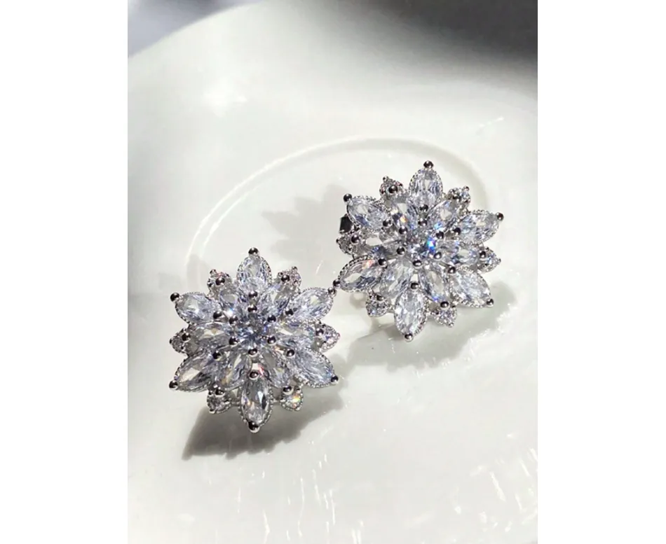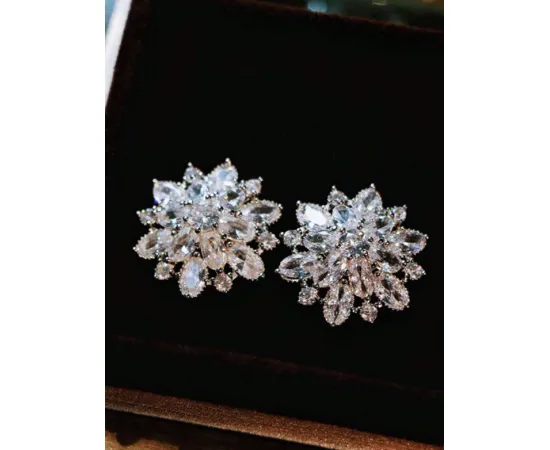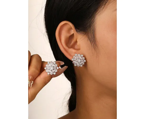 Cercei Argintii Floare, Sparkle, Zirconiu, Otel Inoxidabil - 190929