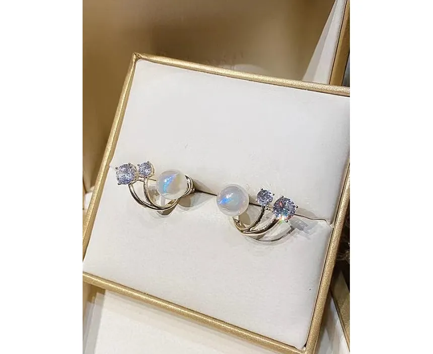 Cercei Aurii cu Perla si Strasuri, forma C - 520546
