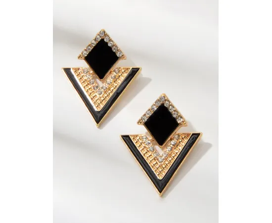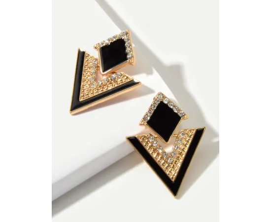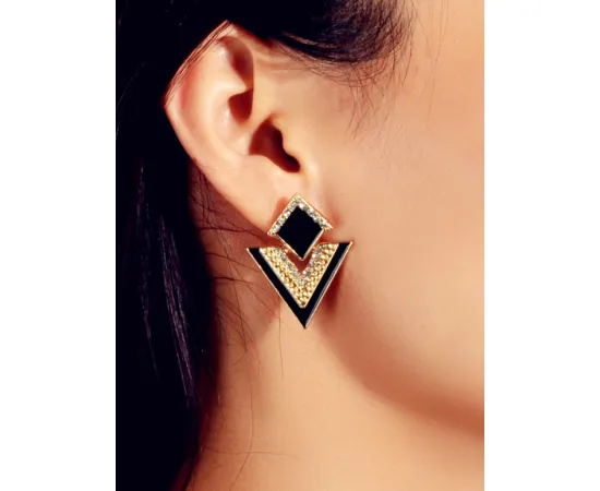Cercei cu Picătura Geometrica – Negru & Auriu - 296956