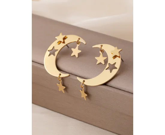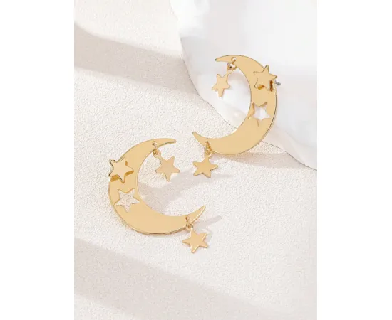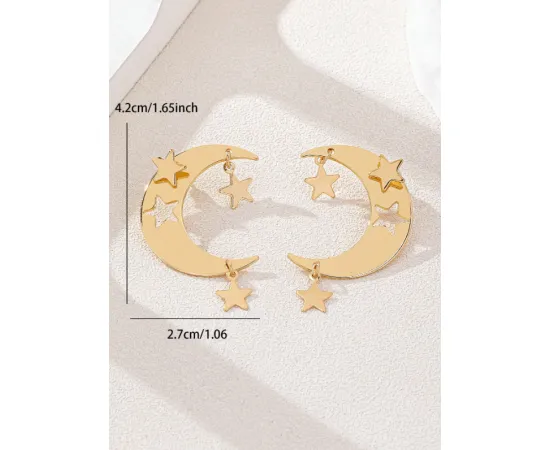 Adaugă o notă de mister și eleganță fiecărei ținute cu acest set rafinat de cercei pentru femei, format din 2 piese asortate. Realizați din aliaj de calitate, acești cercei îmbină armonios simbolul semilunii cu designul delicat al celor cinci stele, oferind un look modern și feminin.