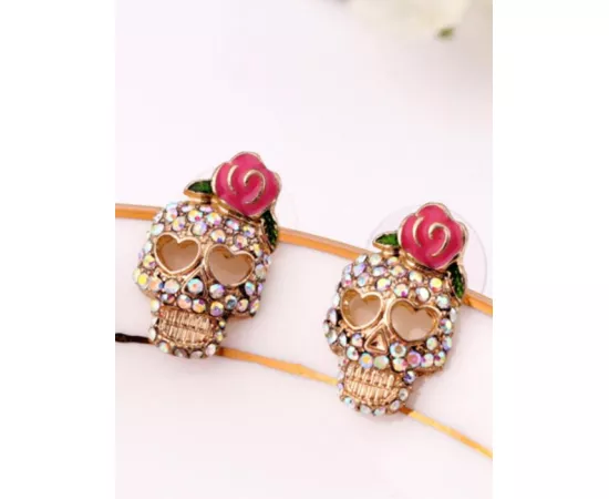 Fiecare pereche de cercei prezintă detalii intricate care redau forma și conturul unui craniu, iar această estetică macabră este accentuată de nuanțele de negru sau argintiu. Acești cercei pot fi realizați dintr-o varietate de materiale, de la metal la sticlă sau plastic, pentru a se potrivi gusturilor și preferințelor tale.