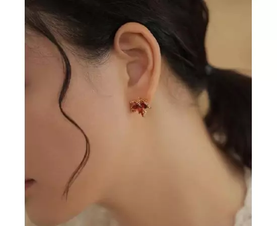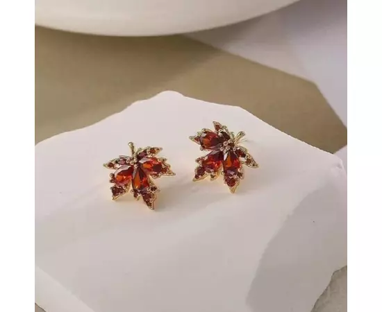 Cercei Frunza cu Strasuri Rosii - 88181