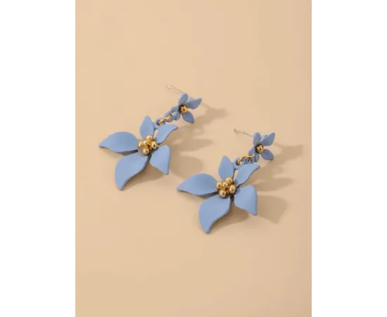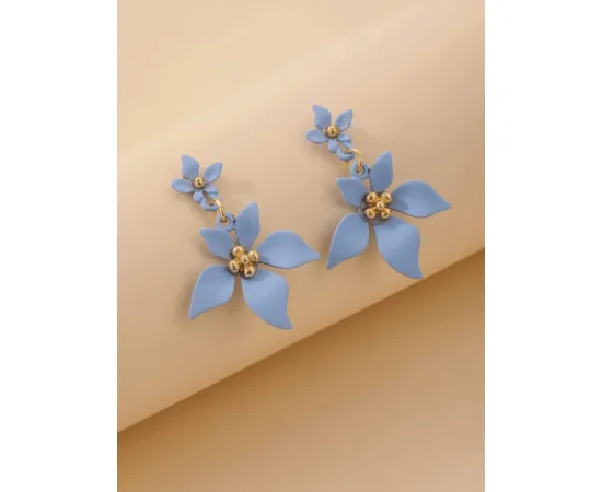 Cercei Delicați cu Design Floral, Baby Blue - 998290