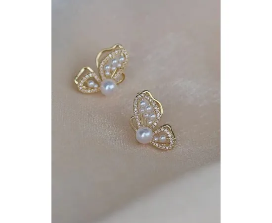 Cercei Eleganti, cu Fluturas si Perle - 964999