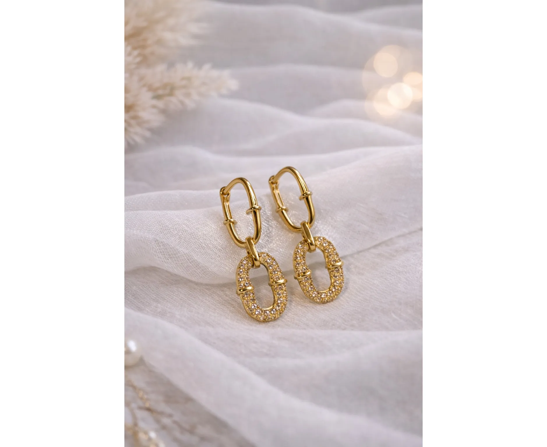 Delicați și subtili, acești cercei placați cu aur, sunt accesoriul ideal pentru un look elegant și rafinat. Dimensiunea compactă ii face discreți, dar suficient de vizibili pentru a adăuga un strop de feminitate și strălucire fiecărei ținute.