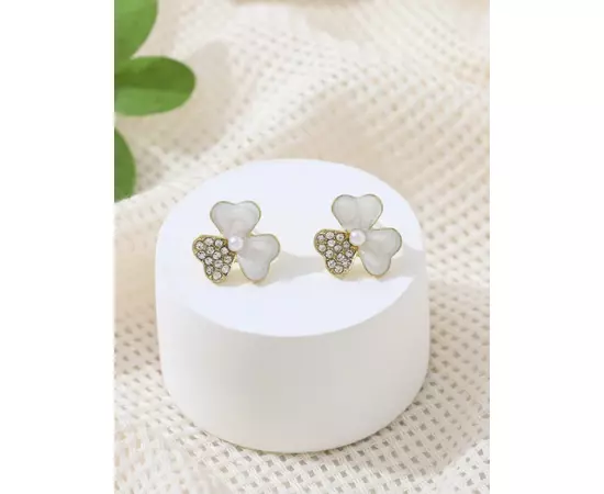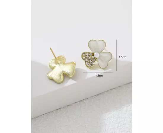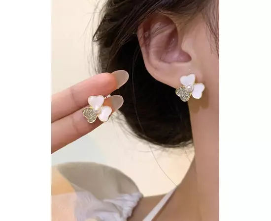 Cercei Floare Alba cu Perla si Pietre - 64173