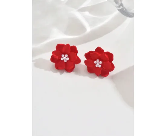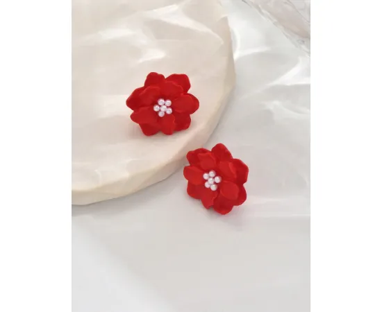 O pereche elegantă de cercei Camellia, cu design minimalist, inspirat de delicatețea florilor de camelie. Realizați într-o nuanță vibrantă de roșu și accesorizați cu perle fine, acești cercei adaugă un strop de rafinament oricărei ținute. Versatili și feminini, sunt alegerea ideală atât pentru ținutele de zi, cât și pentru ocazii speciale. Dimensiuni: 2.4 x 2.4 cm.
