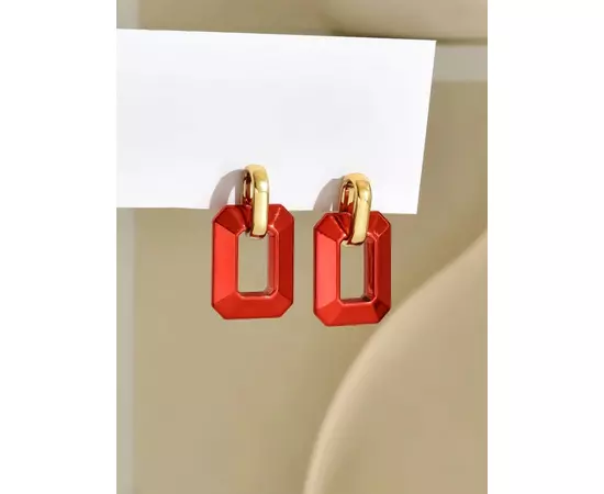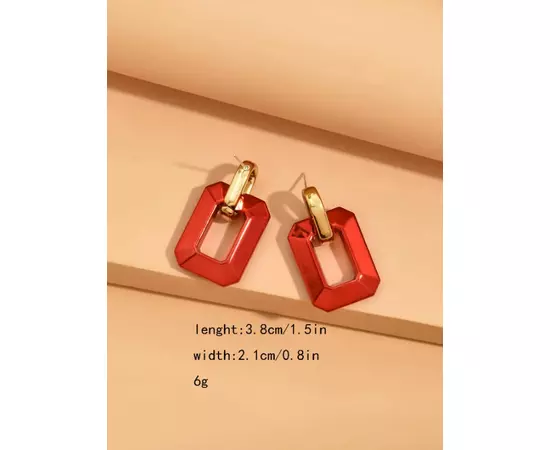 Cercei Forma Geometrica Rosu cu Auriu 3.8x2.1cm - 80449