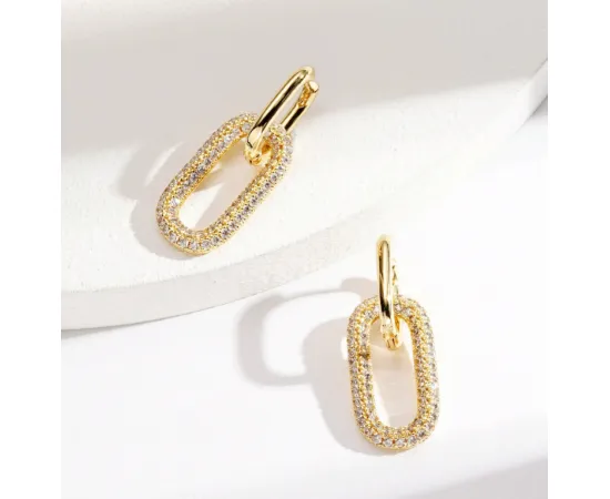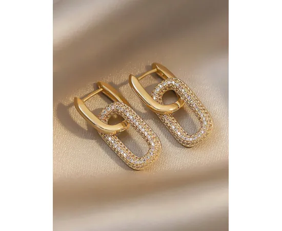 Cercei Geometrici, Aurii, cu Zirconiu Cubic - 237104