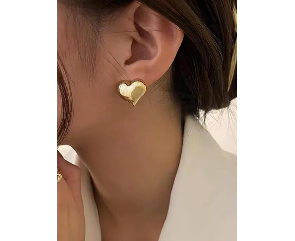 Adaugă un strop de rafinament oricărei ținute cu acești cercei în formă de inimă, fin lucrați și placați în auriu. Simpli, dar de efect, se așază perfect pe lobul urechii, completând lookul tău cu un accent romantic și modern. Ideali pentru purtarea zilnică sau pentru ocazii speciale, acești cercei sunt alegerea perfectă pentru femeia care iubește detaliile fine.