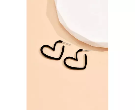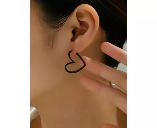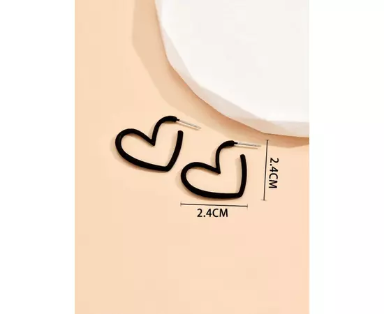 Cercei Inimioara Minimalista Neagra, 2.4x2.4cm - 33789