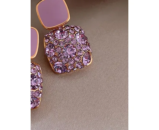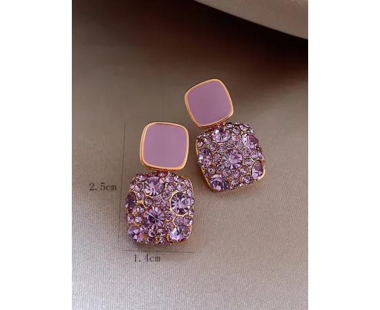 Cercei Lumetra, cu Picătură Pătrată, din Aliaj de Zinc, cu Stras, Lila - 747964