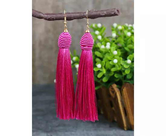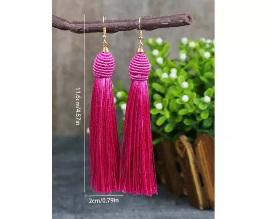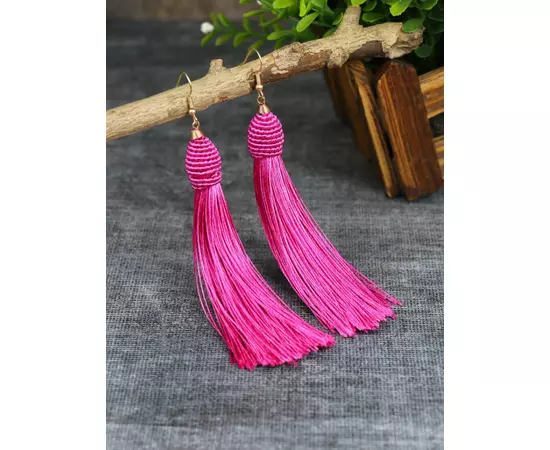 Cercei Lungi cu Ciucuri Roz Electric - 14673