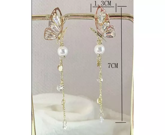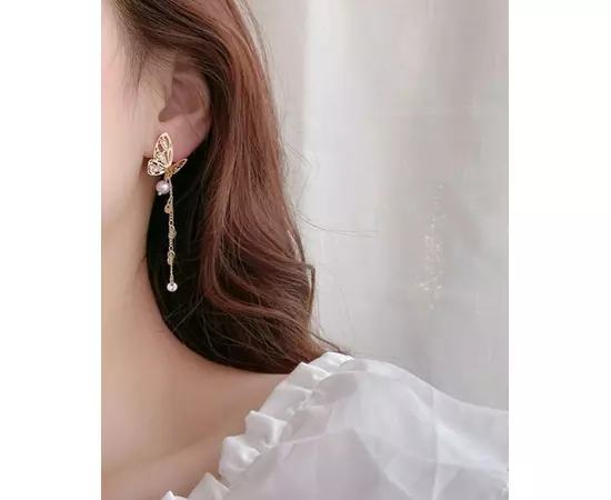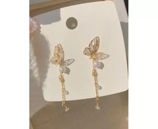Cercei Lungi cu fluture si perla