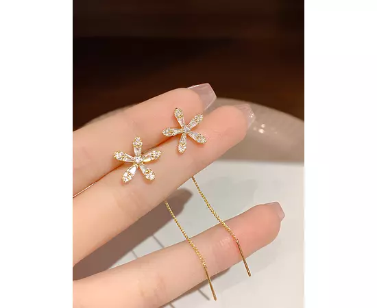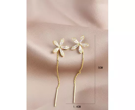 Cercei Lungi Floare, Aurii - 089938