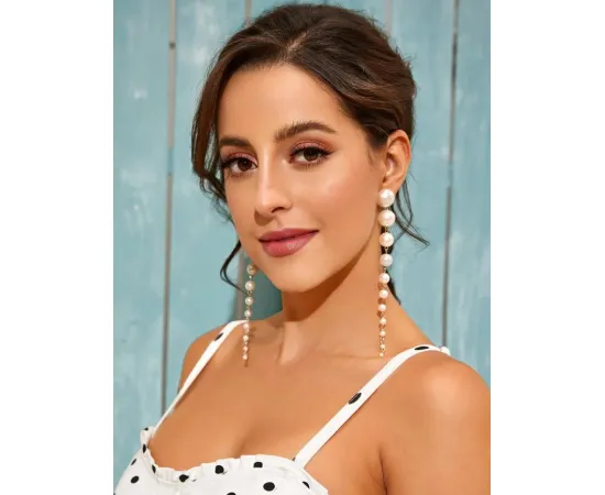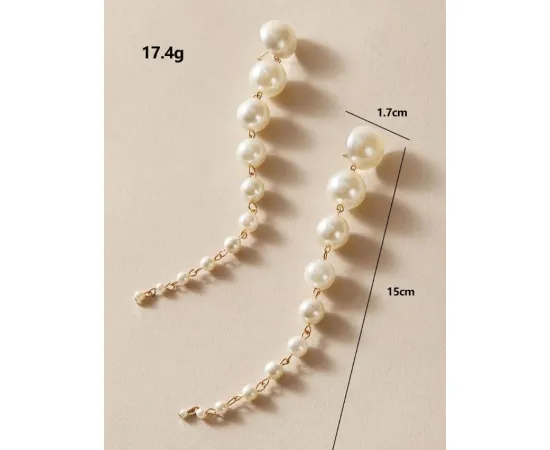 1 pereche de cercei eleganți, cu perle artificiale rafinate și ciucuri lungi, creați pentru a adăuga un plus de feminitate și rafinament oricărei ținute. Acești cercei statement sunt alegerea ideală pentru petreceri, evenimente speciale sau apariții elegante de seară.