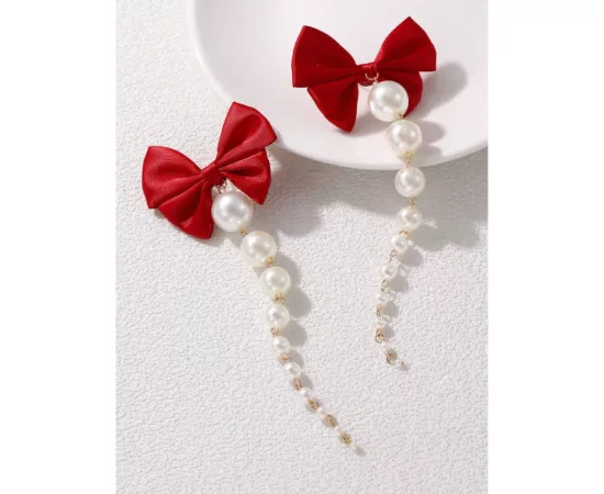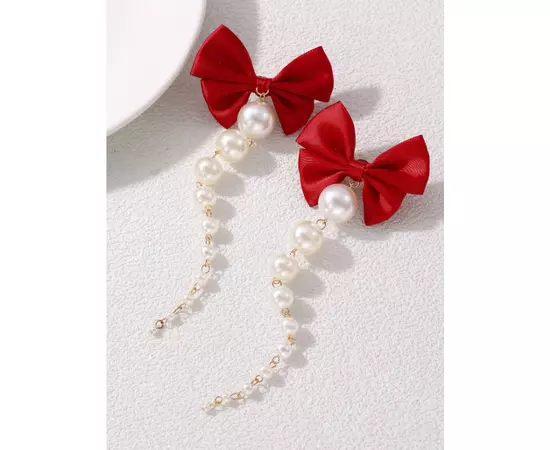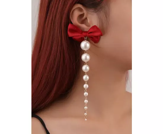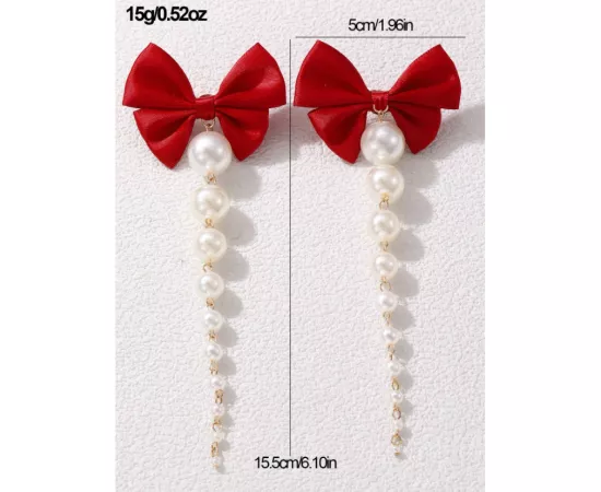 Cercei Lungi Perle Albe si Funda Rosie - 41166