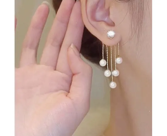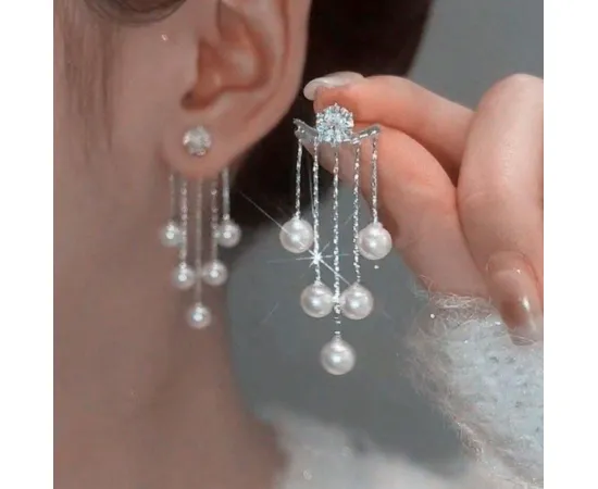 1 pereche de cercei lungi, cu ciucuri delicati și perle rafinate, creați special pentru a completa ținuta de mireasă sau pentru petreceri elegante. Acest accesoriu la modă adaugă un aer sofisticat și unic oricărei apariții festive.