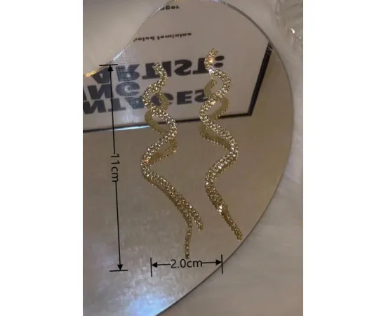 Îmbină misterul, eleganța și atitudinea cu acești cercei spectaculoși în formă de șarpe, cu un design curbat, seducător și plin de personalitate. Realizați din aliaj de zinc durabil și decorați cu strasuri strălucitoare, acești cercei adaugă o notă exotică și îndrăzneață oricărei ținute.
