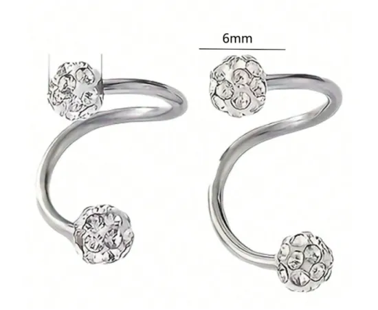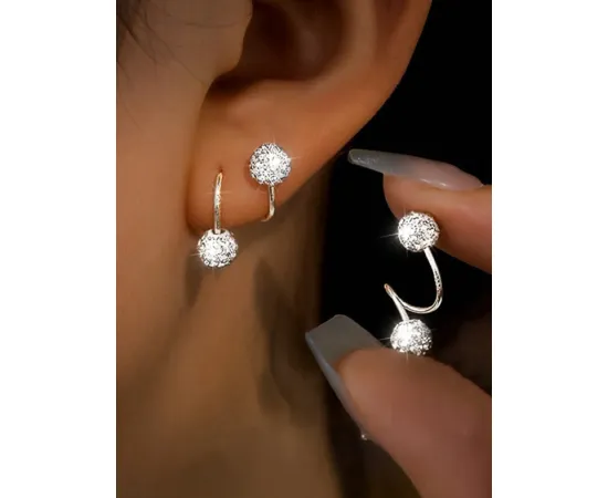 Răsfață-ți stilul cu o pereche de cercei unici, în care designul modern se îmbină cu rafinamentul detaliilor luxoase. Acești cercei tip bile cu strasuri strălucitoare sunt prevăzuți cu sistem cu șuruburi duble pentru fixare sigură și un efect vizual deosebit. Elementul distinctiv? Manșeta elegantă în formă de S, care urcă delicat pe lobul urechii, adăugând un accent avangardist oricărei ținute.