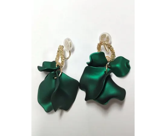 Cercei Vintage, Clip-On, cu Flori, Verde - 187878V