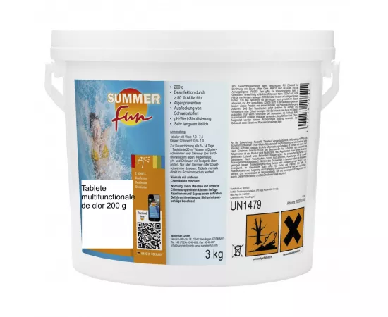 Clor multifunctional tablete de 200 grame, Summer Fun, pentru apa piscina, 3 kg