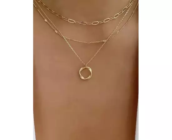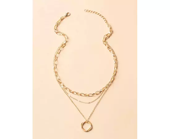 Colier auriu cu lant, circular, cu strasuri - 14324