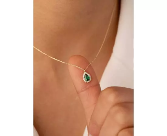 Colier auriu cu talisman verde - 94810