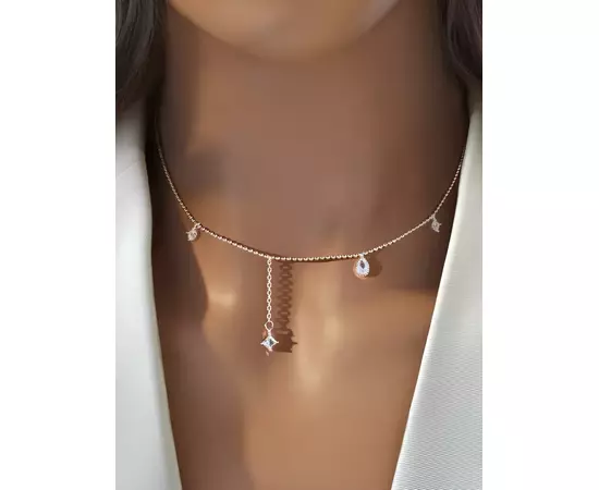Acest colier poate varia de la un lanț subțire și delicat, potrivit pentru purtarea zilnică, la modele mai complexe și elaborate, cum ar fi cele cu pandantive decorative, forme geometrice sau motive florale. Pandantivele pot include pietre prețioase sau semiprețioase, perle, cristale sau alte ornamente, adăugând un plus de eleganță și personalitate.
