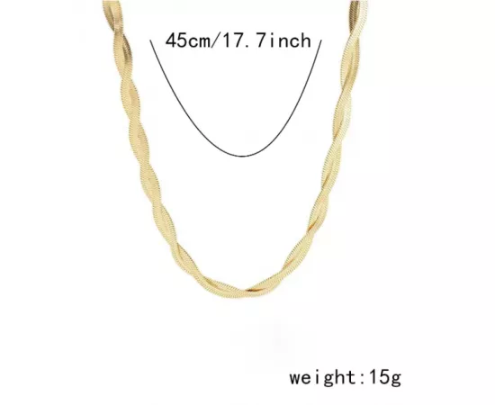 - Culoarea aurie și designul împletit fac colierul ușor de asortat cu diverse ținute și accesorii, oferind un punct focal sofisticat.