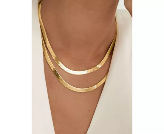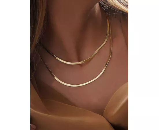 Acest colier dublu tip choker, auriu, este alegerea perfectă pentru oricine dorește să adauge un accesoriu elegant și contemporan la garderoba lor, evidențiind un stil modern și sofisticat.