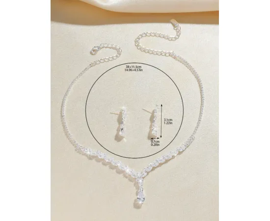 Colier și Cercei cu Zirconiu Cubic, Argintiu - 865169