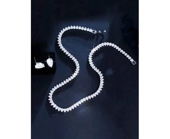 Completează-ți ținuta cu un set elegant și strălucitor, compus din colier și cercei, perfect pentru ocazii speciale sau purtare zilnică. Realizat într-un design modern, cu pietre de zirconiu cubic în formă de picături de apă, acest set adaugă un plus de rafinament și feminitate oricărui look.
