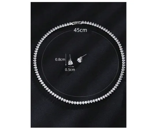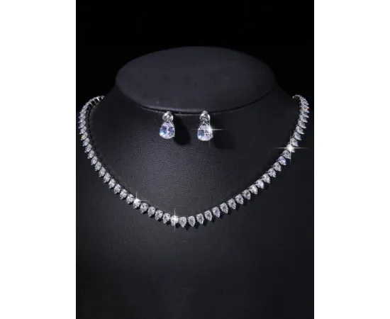 Colier și Cercei cu Zirconiu Cubic, Formă Picătură de Apă, Argintiu - 223307