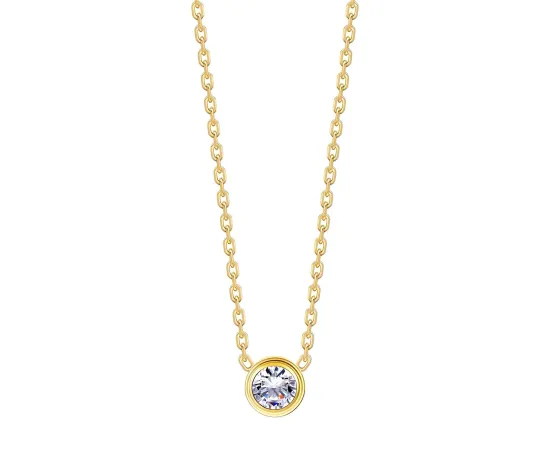 Delicat și strălucitor, acest colier placat cu aur este decorat cu un pandantiv rotund cu zirconiu cubic, care adaugă un strop subtil de eleganță fiecărei ținute. Designul său minimalist și lanțul fin îl fac perfect pentru purtarea zilnică sau pentru a completa un look sofisticat de ocazie.