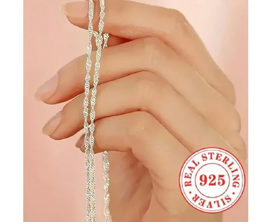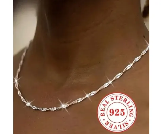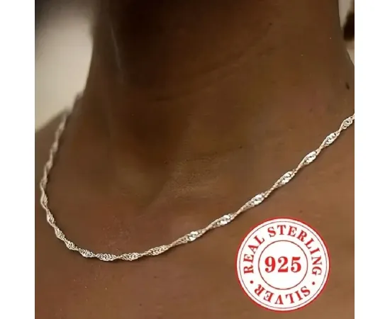 Un colier minimalist, dar plin de rafinament – realizat din argint sterling S925 de înaltă calitate, cu un lanț elegant ondulat ce reflectă lumina asemenea valurilor fine de apă. Designul delicat, dar de efect, face din acest colier alegerea perfectă pentru purtare zilnică sau ca accesoriu discret în combinații elegante.