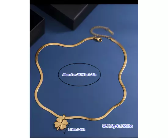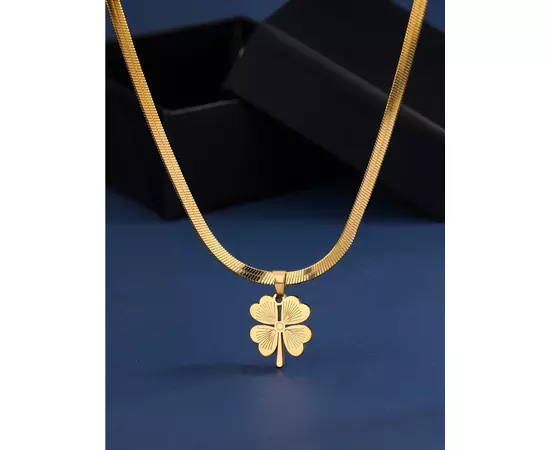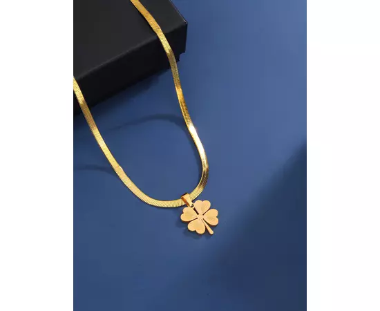 Colier Tip Sarpe, Pandantiv Trifoi, Otel Inoxidabil, Auriu - 71768